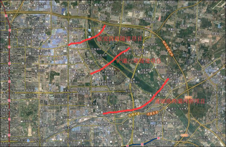 我公司承擔(dān)的西安浐灞生態(tài)區(qū)規(guī)劃區(qū)域“一橋兩隧”項目修建性詳細(xì)規(guī)劃方案設(shè)計,設(shè)計內(nèi)容包括:錦堤六路、歐亞四路穿灞河隧道工程項目(隧道約1886-2596m);錦堤三路、浐灞三路穿灞河、浐河隧道工程項目(隧道約2194m);通塬路跨灞河橋工程項目(橋梁約820m)。工程總投資約26億元。