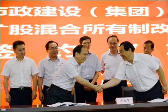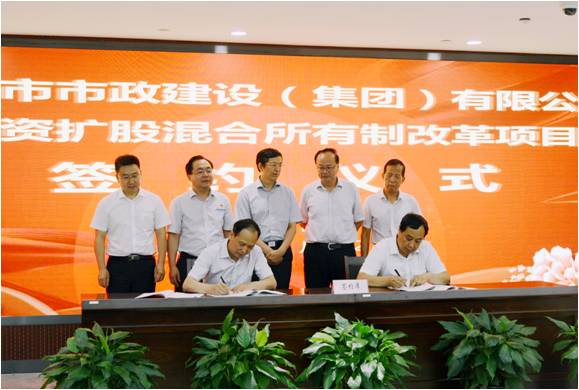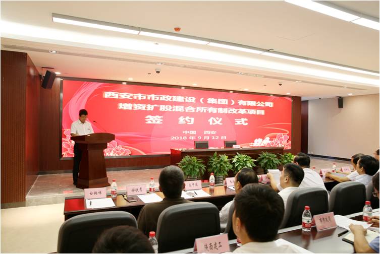 9月12日下午,西安市市政建設(集團)有限公司增資擴股混合所有制改革項目簽約儀式在西安市公共資源交易中心舉行,增資企業西安市市政建設(集團)有限公司董事長馬松濤,投資方陜西建工集團有限公司副總經理毛繼東、西安市政設計研究院有限公司董事長高中俊、陜西秦商投資管理有限公司、西安秦商科創投資合伙企業總經理、管理人代表徐鐵鷹參加會議并代表股東簽署協議,西安市人民政府國有資產監督管理委員會主任劉三民、西安市市政公用局局長王建東出席儀式并致辭,西安市工商局注冊分局副調研員杜智勇、西安市公共資源交易中心主任李積文、西安市市政建設(集團)有限公司職工代表張巍共同見證了簽約。