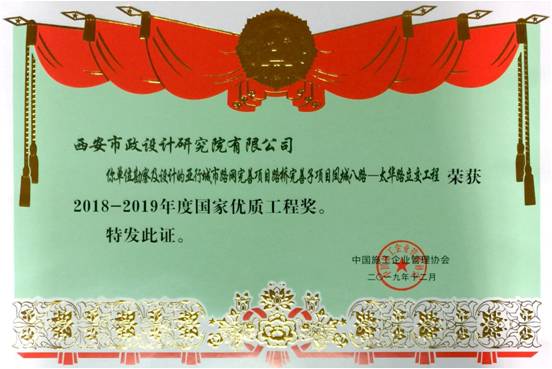 我公司設計的“鳳城八路-太華路立交工程”榮獲2018-2019年度國家優質工程獎 近日,我公司設計的“鳳城八路-太華路立交工程”榮獲2018-2019年度國家優質工程獎,該工程是亞行城市路網完善項目路橋完善子項目中的重點工程,位于西安市主城區北部。鳳城八路為城市東西向主干路,太華路為城市八射線之一,是北郊行政區域與東部浐灞生態區、國際港務區、紡織城地區、北郊大學城及北部涇河工業園等區域之間的重要交通樞紐。