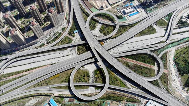 西安灃渭新區(qū)后圍寨立交工程地處西安市后圍寨,位于三橋新街、世紀(jì)大道、天臺(tái)路、尚航路、西安高架快速干道、西寶高速引道等6條道路的交叉口處,是西安主城區(qū)與灃東新城及對(duì)外 交通聯(lián)系重要的交通樞紐。立交跨越隴海鐵路、西成高鐵等多條鐵路,采用大跨徑頂推施工方法跨越。立交為三層苜蓿葉互通式立交,占地約1000畝,橋梁面積約90000余平方米,總投資約8.1億元。該立交于2017年建成,目前為西北地區(qū)最大的城市立交。