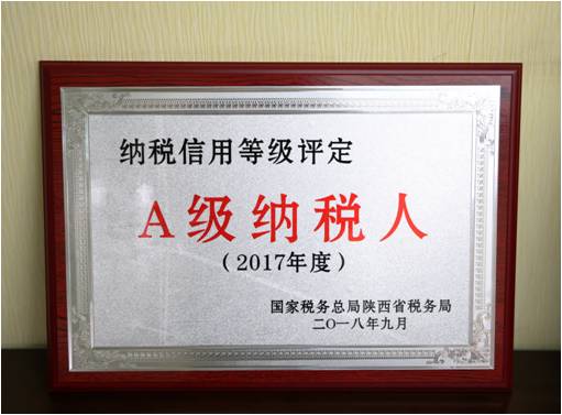 我國納稅信用等級分為A、B、M、C、D五級,A級為最高等級,是企業依法誠信納稅、積極配合的重要標志,對樹立企業信譽、拓寬業務有著重要意義。2018年上半年,國家稅務總局西安碑林區稅務局以我公司日常納稅評估和稅源比對為基礎,對公司納稅信用情況進行綜合考評,經過區、市、省稅務機構層層考核和篩選,最終我公司被評定為“陜西省2017年度納稅信用A級納稅人”。