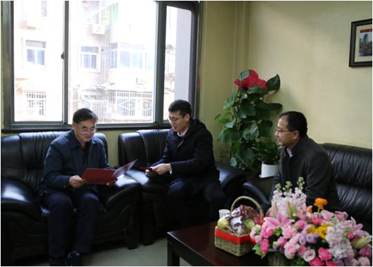 1月20日上午,西咸新區管委會主任康軍委托副主任趙孝、西咸新區黨工委人才工作領導小組辦公室副主任趙宏慶等四位同志代表市委市政府赴我公司走訪慰問國務院特殊津貼專家、陜西省勘察設計大師、公司副總經理王社平,與他進行了親切的交流,并送上了鮮花和慰問信,感謝他為西安城市建設作出的突出貢獻。