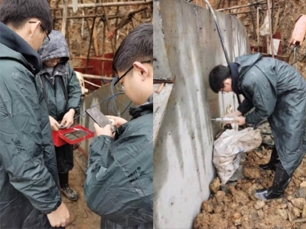 當日在蒙蒙細雨中,研發中心一行人對施工現場懸索橋錨碇混凝土、風纜施工位置及施工要點進行了耐心的技術交底,并對諸多施工難點提出合理化建議。與此同時,對現場錨固區混凝土進行了回彈測試,對主纜混凝土錨固區底部、中部及上部分別進行了壓力數據的采樣與記錄,確保巴山大峽谷玻璃懸索橋安全建成,保障后期順利運營。