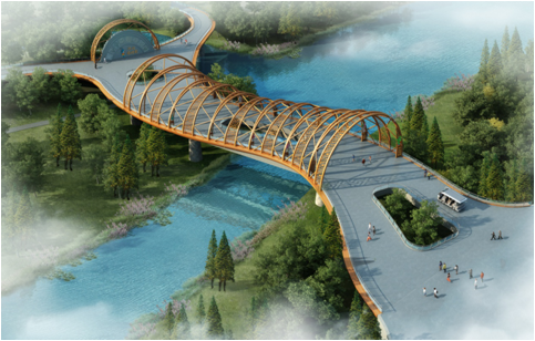 文化鑄魂 用心雕琢 助力第十三屆廣西(河池)園博園項目建設 廣西園林園藝博覽會是廣西自治區政府著眼于推進新型城鎮化跨越式發展、改善人居環境、加快城市生態文明示范區建設的一項重大活動,同時也是展示園林園藝藝術水平和廣西魅力的有利契機和重要發展平臺。我公司三分院承攬了園區內四座景觀廊橋的設計任務,分別為同心廊橋、苼舞廊橋、壽福廊橋、竹藝廊橋。