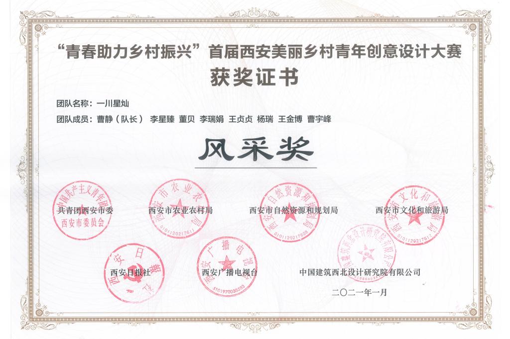 近日,由共青團(tuán)西安市委聯(lián)合西安市農(nóng)業(yè)農(nóng)村局、西安市自然資源和規(guī)劃局、西安市文化和旅游局、西安日?qǐng)?bào)社、西安廣播電視臺(tái)、中國建筑西北設(shè)計(jì)研究院有限公司舉行的首屆“西安美麗鄉(xiāng)村青年創(chuàng)意設(shè)計(jì)大賽決賽暨頒獎(jiǎng)儀式”在長安唐村國際會(huì)議中心成功舉辦,來自大賽主辦、承辦、支持方的領(lǐng)導(dǎo)、嘉賓及專家評(píng)委、參賽團(tuán)隊(duì)代表80余人參加,我公司景觀園林分院設(shè)計(jì)團(tuán)隊(duì)的參賽作品喜獲風(fēng)采獎(jiǎng)。