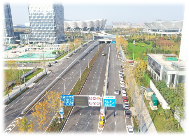 我公司深耕國際港務區多年,充分發揮屬地化資源優勢,為加快國際港務區基礎設施建設作出了積極貢獻。在“西安奧體中心市政配套項目”中,先后完成了向東路、柳新路、杏渭路、柳林路、迎賓大道、杏渭路跨繞城等40余項綜合設計任務。設計中采用石材道牙及平石、石材+透水磚人行道鋪裝、交叉口導流島、智慧路燈、智慧交通、鋼格板雨水箅子、隱形檢查井蓋等專項創新設計,使奧體周邊市政工程設計品質達到國內領先水平。