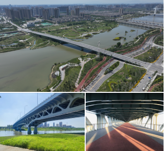 橋梁設計方案在滿足功能需求的基礎上,運用大地藝術景觀手法,結合橋下濕地公園及河道的天然資源,縱橫向采用曲線變截面,最大限度展現景觀設計;采用變高雙層鋼桁連續梁橋型,外觀如蛟龍般屹立于灞河之上,氣勢雄偉,與橋下景觀公園交相呼應,共同構成了城市的新風景。