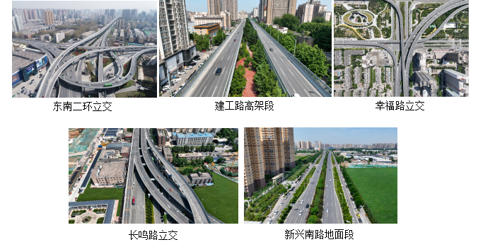 西安市新興南路工程PPP項目,是西安市快速路系統中一條重要的東西向城市快速路,西起南二環興慶橋,途經南二環、建工路、幸福南路、長鳴路、新興南路,東至東三環,道路全長約7.84km,總投資17.59億元,包括東南二環立交、建工路高架段、幸福路立交、長鳴路立交、新興南路地面段五部分,車行道面積36.4萬㎡,橋梁面積12.2萬㎡,雨、污水管道14496m。采用高架-地面雙系統,配合車道設置立交節點解決不同層次的交通需求和轉換。