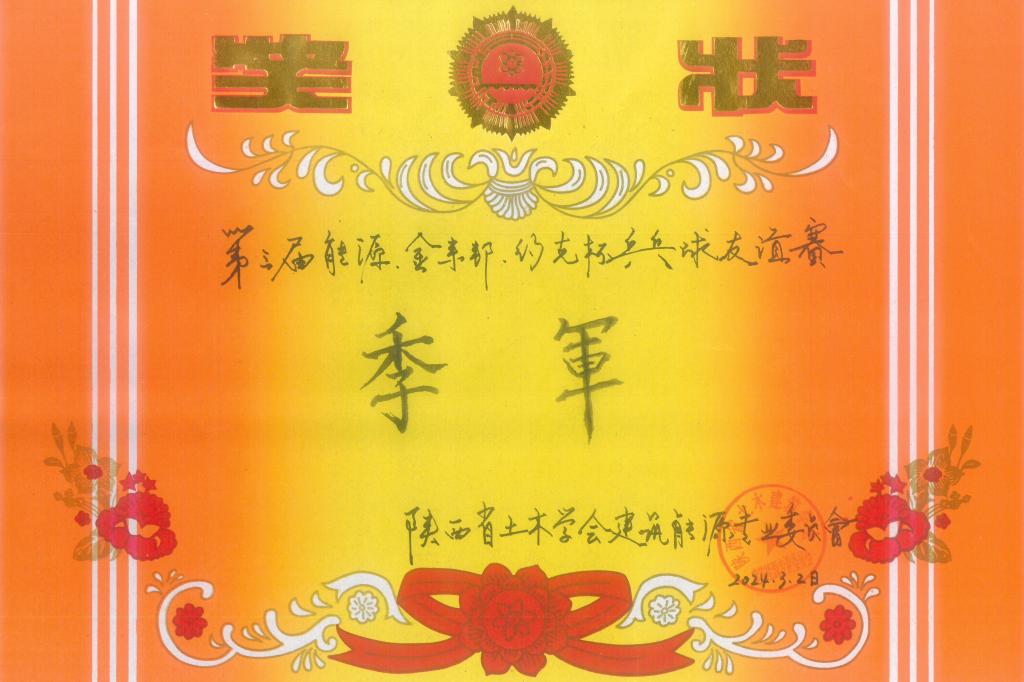 3月2日,陜西省土木學(xué)會建筑能源專業(yè)委員會在土門文化宮乒乓球館舉辦了“第三屆能源·金來邦·合達杯·設(shè)計院系統(tǒng)乒乓球友誼賽”,本次比賽由來自十家單位組成的12支隊伍參加,我公司乒乓球愛好者組成的市政設(shè)計院一隊和土建環(huán)境分院乒乓球愛好者組成的市政設(shè)計院二隊參賽,經(jīng)過了循環(huán)賽、淘汰賽、晉級賽和決賽四輪激烈的爭奪,由市政設(shè)計院二隊獲得本次友誼賽季軍,范曉莉同志積極參與組織協(xié)調(diào)及現(xiàn)場服務(wù)工作,被授予“體育風(fēng)尚獎”。