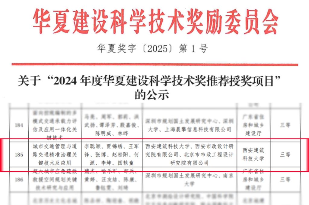 近日,我公司參與完成的《城市交通管理需求識別與道路交通精準治理關(guān)鍵技術(shù)研究》,榮獲“2024年度華夏建設(shè)科學(xué)技術(shù)獎”三等獎。